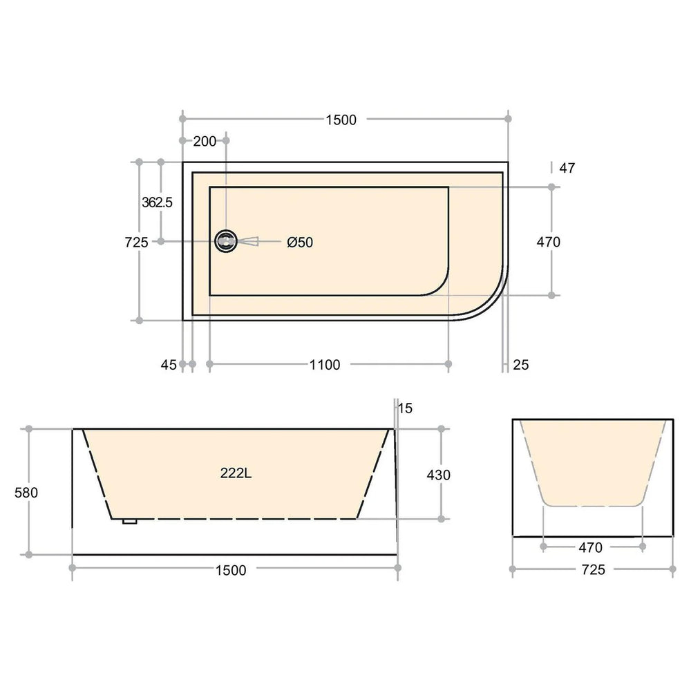 The Casey Left Corner 1500 Bath Gloss White is a well-crafted fixture made from high-quality materials, designed to deliver reliable performance and long-term durability.
