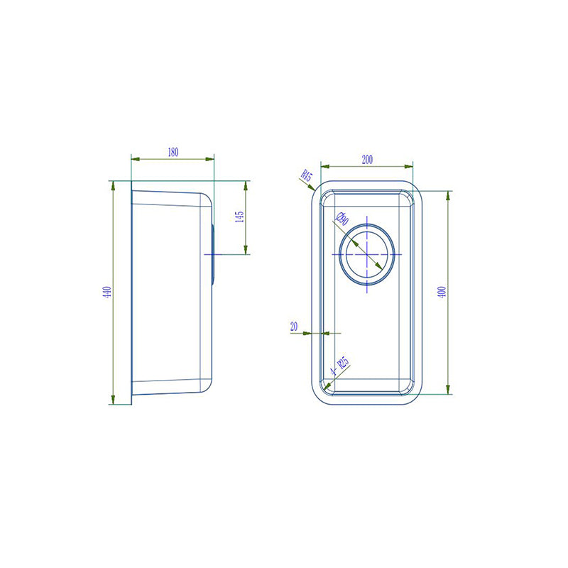 Single Rectangle Bowl Stainless Steel Kitchen Sink Round Waste PKSS-240R